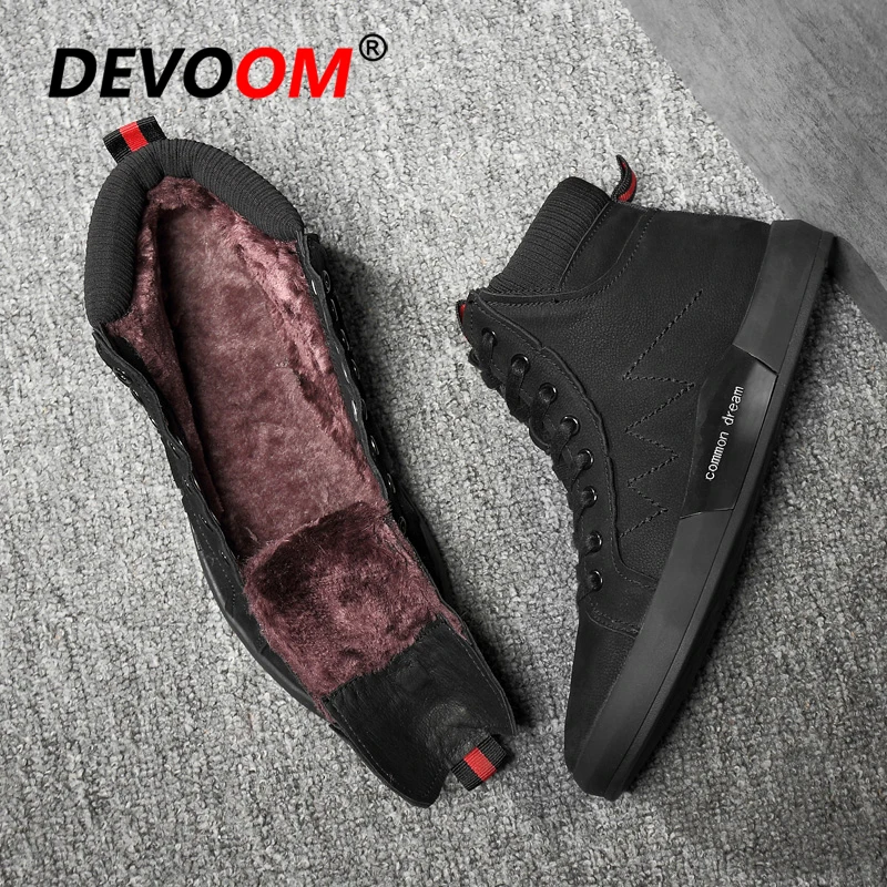 Goede Koop Merk Kwaliteit Lederen Laarzen Nieuwe Winter Laarzen Mannen Mode Lederen Schoenen Mannen Zwart Bont Sneakers Streep Snowboots voor Mannen maat 44 Goedkoop