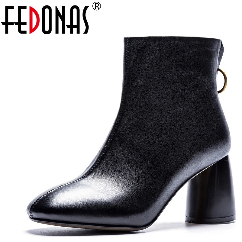 Kopen Goedkoop FEDONAS Hot Herfst Winter Vrouwen Enkellaars Effen Europese Dames Martin Schoenen Vrouw Echt Leer Rits Motorlaarzen Online