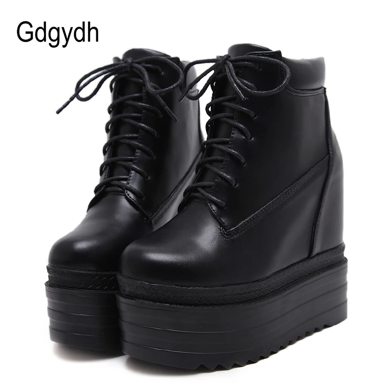 Goede Koop Gdgydh 2018 Nieuwe Aankomst Vrouwen Wiggen Schoenen Enkellaarsjes Vetersluiting Toenemende Hoge Hakken Casual Schoenen Vrouwen Platform Herfst Laarzen Goedkoop