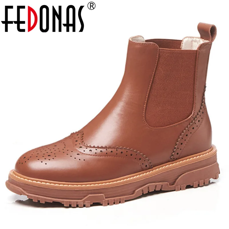 Kopen Goedkoop FEDONAS Merk Enkellaarsjes Herfst Winter Warme Snowboots Flats Platforms Motorlaarzen Dames Echt Lederen Casual Schoenen Prijs