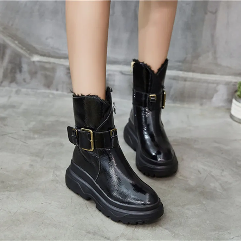 2018 Vrouwelijke Knappe Martin Boot Schoenen Gesp Bont Warm Winter
