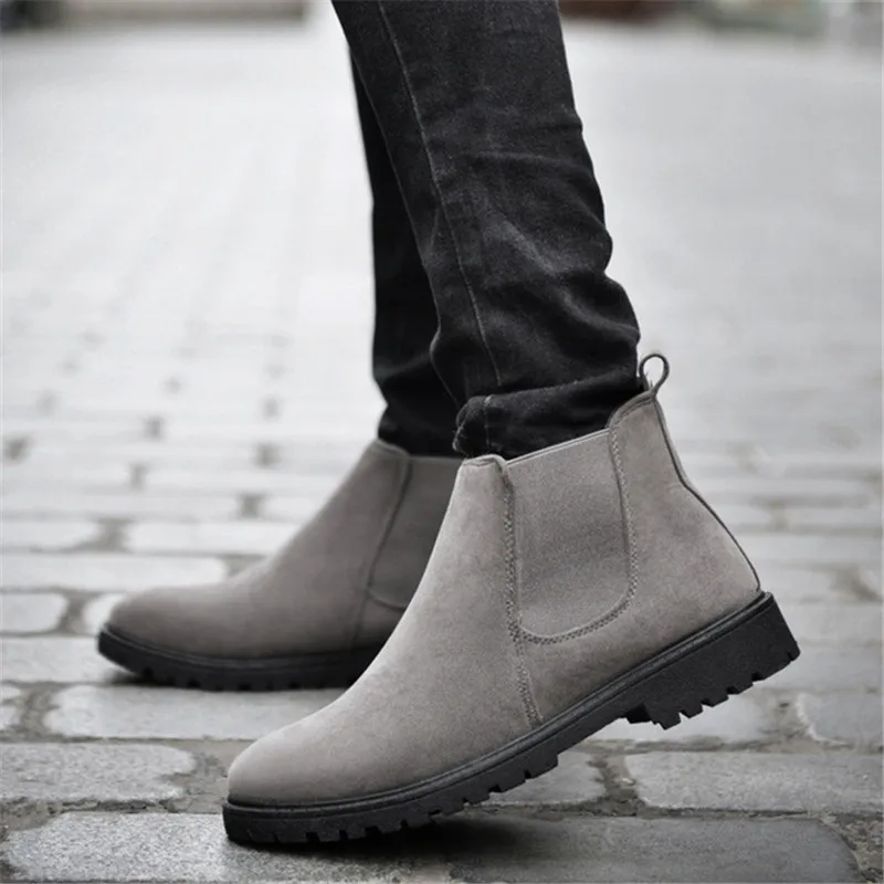 Beste Koop ZOQI Koe Suede Chelsea Laarzen Mannen Sneakers Hoge Kwaliteit Enkellaarsjes Mannen Schoenen Lederen Winter Laarzen Mannen Werken Schoenen Zapatos hombre Goedkoop
