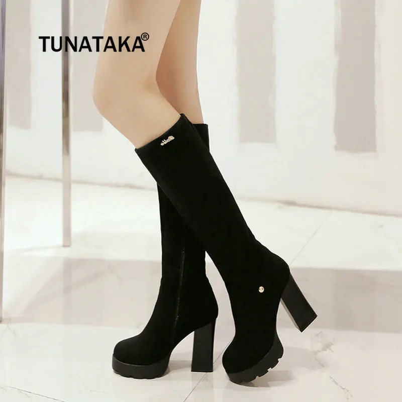Beste Kopen Vrouwen Platform Chunky Hoge Hak Laarzen Fashion Zijrits