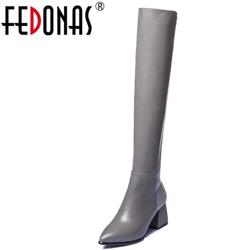 Goede Koop FEDONAS 1 Fashion Vrouwen Over De Knie Laarzen Herfst Winter Warm Hoge Hakken Schoenen Vrouw Echt Leer Sexy Party Prom hoge Laarzen Goedkoop