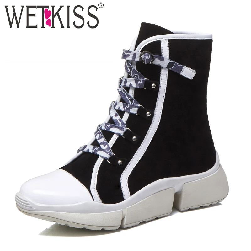 Beste Koop WETKISS Koe Lederen Vrouwen Enkellaars Ronde Neus Kruis Gebonden Schoeisel Platte Zool Platform Vrouwelijke Boot Mode Casual Schoenen Winter Goedkoop