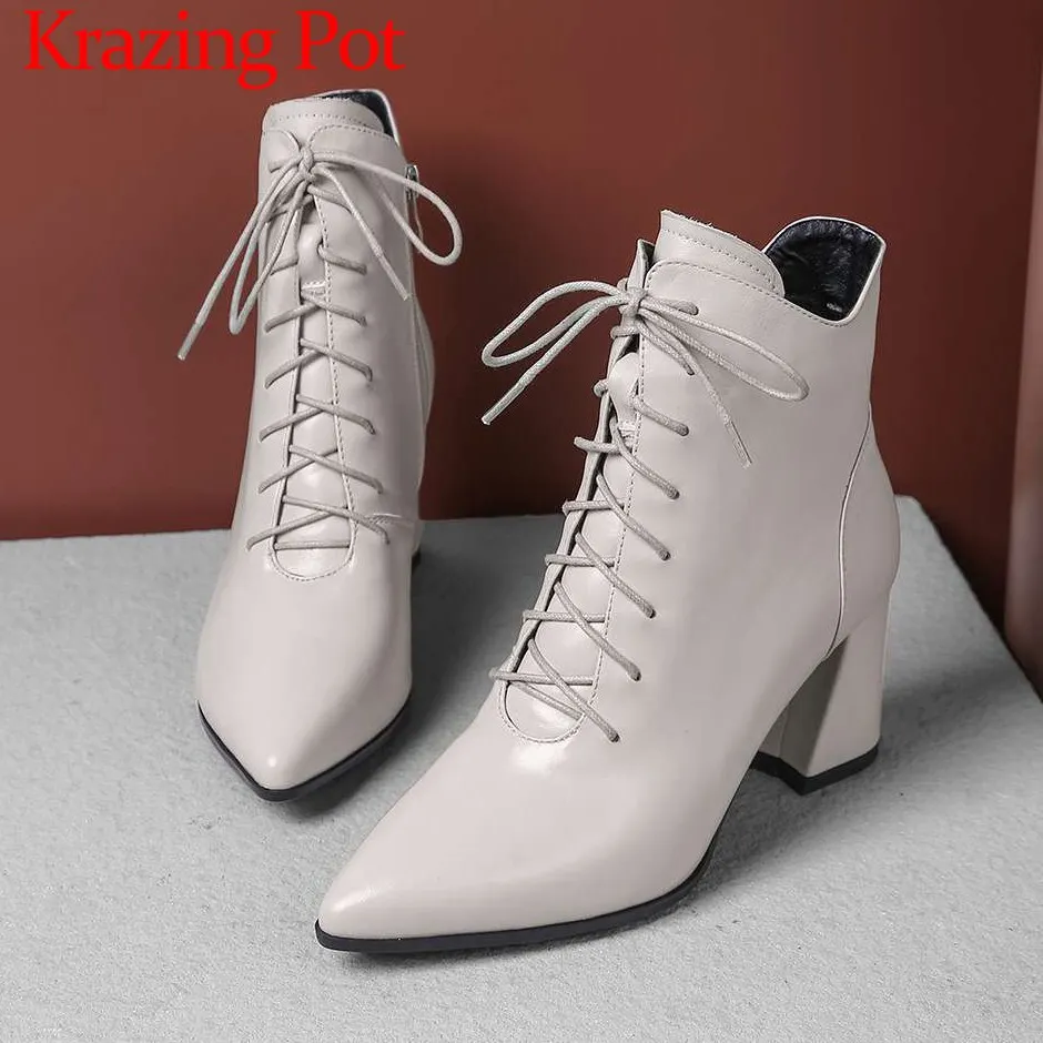 Beste Koop Rome office lady oxford puntschoen solid echt leer rits dikke hoge hakken nieuwe mode elegante vintage mid kalf laarzen L14 Goedkoop