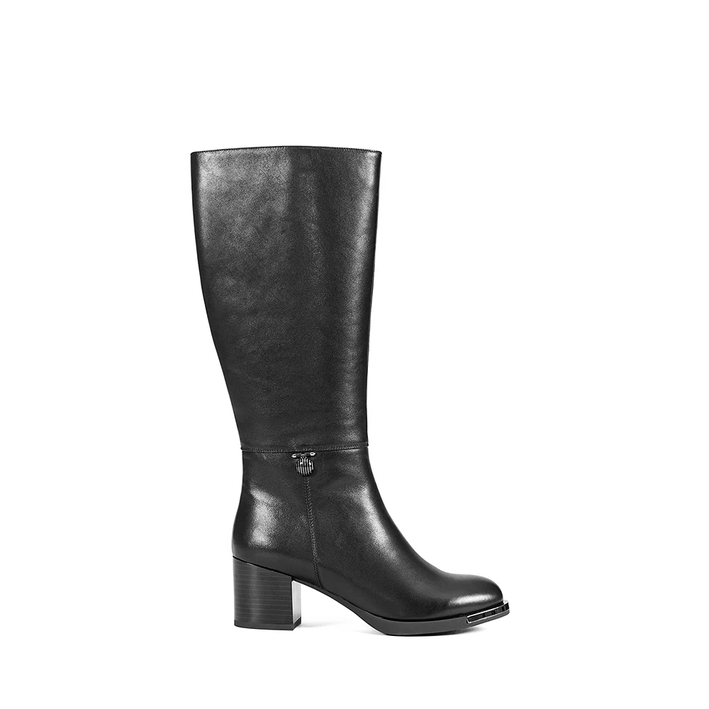Lederen Knie Hoge Laars Retro Ronde Neus Hak Warm Wol Bont Dame Laarzen