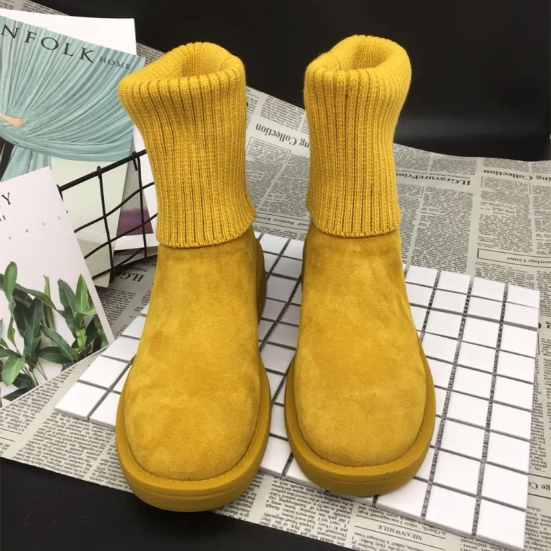 Beste Kopen 2018 winter nieuwe mode eenvoudige effen kleur laarzen vrouwen retro stijl stretch knit casual laarzen. Goedkoop