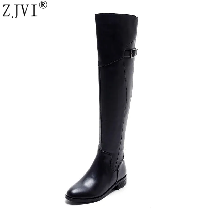 Beste Kopen ZJVI Vrouw Herfst Winter Echt Lederen Dij Hoge Laarzen 2018