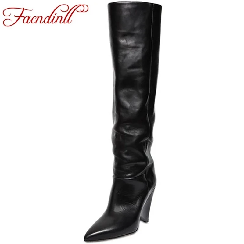 Kopen Goedkoop FACNDINLLeurope amerika populaire vrouwen over de knie laarzen hoge hak zacht leer puntige teen botas winter dij hoge laarzen vrouwen Prijs