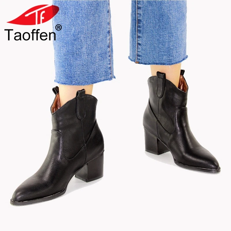 Beste Koop TAOFFEN Herfst Winter Fashion Slip On Retro Vrouw Enkellaars Vierkante Hak Vrouwen Schoenen Plus Size 32 47 westerse Laarzen Vrouw Goedkoop