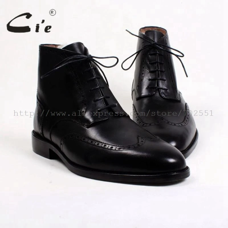 Kopen Goedkoop Cie ronde neus wing tips lace up effen zwarte wol binnen winter kalf lederen laars 100% echt kalfsleer ademend zool A84 Online