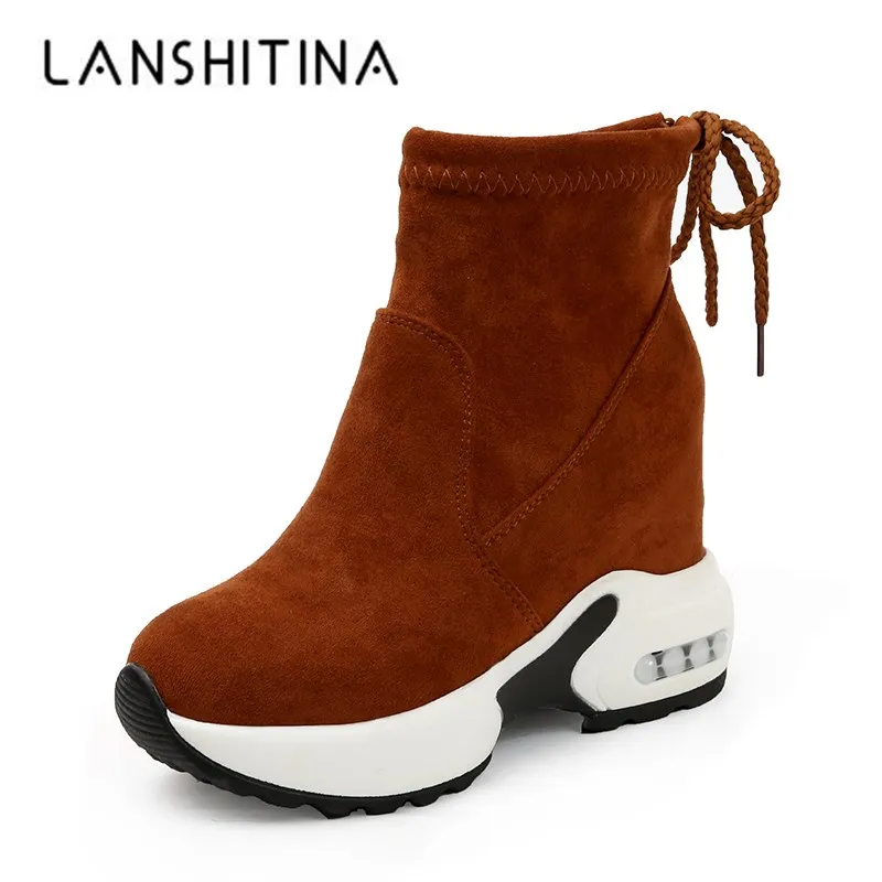 Beste Koop 2018 Suede Winter Laarzen Vrouwen Platform Enkellaarsjes Casual Wedge Hakken Klimplanten Vrouw Fashion Inner Incareased Herfst Sneakers Goedkoop
