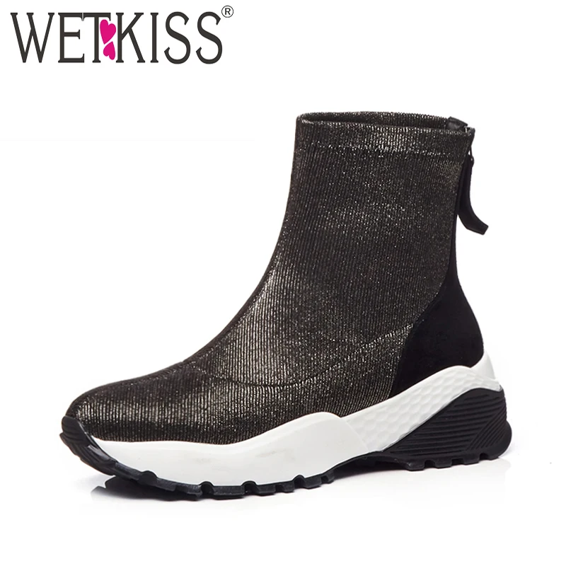 Beste Kopen WETKISS Winter Vrouwen Enkellaars Zip Schoeisel Mode Toevallige Meisjes Schoenen Koe Suede Platform Stretch Vrouwelijke Boot Schoenen Vrouwen 2018 Goedkoop