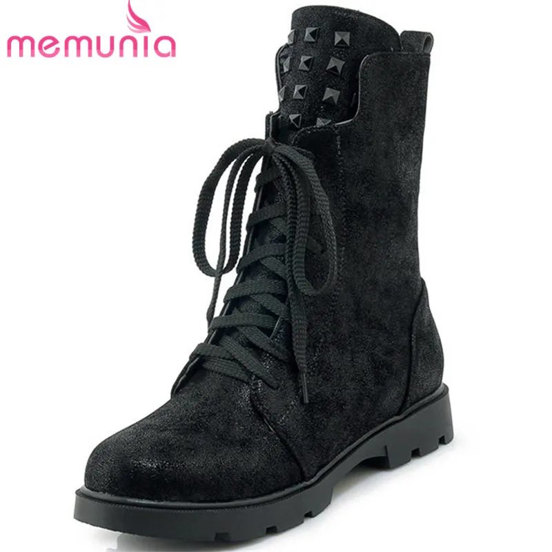 Kopen Goedkoop MEMUNIA 2018 big size enkellaarsjes vrouwen lace up ronde neus herfst schoenen mode motorlaarzen toevallige med hakken schoenen vrouw Prijs