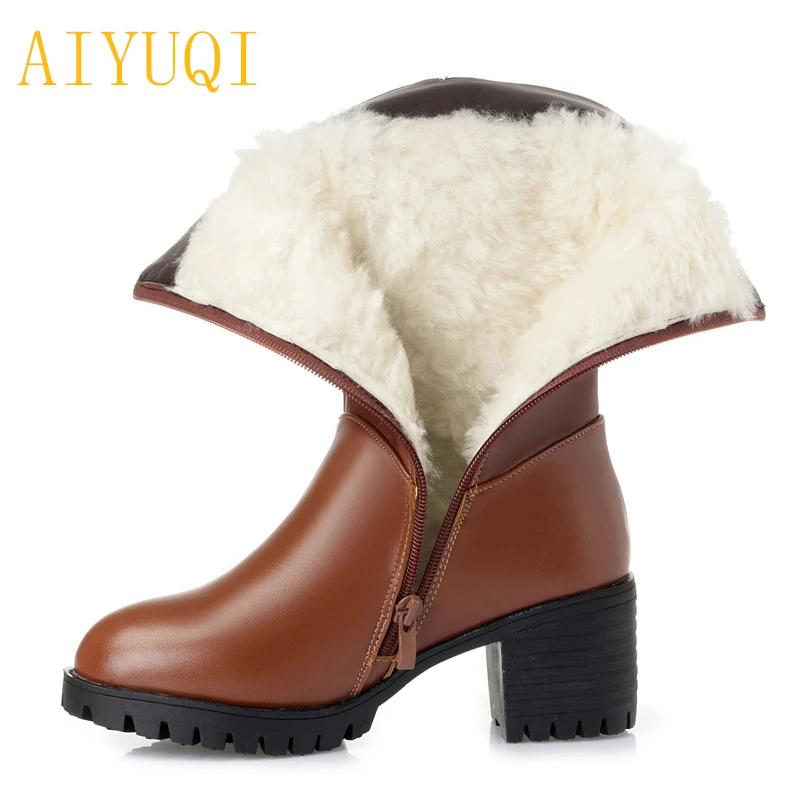 Beste Kopen AIYUQI Vrouwelijke hoge laarzen 2018 nieuwe lederen vrouwelijke winter laarzen, big size 35 43 vrouwelijke Martin laarzen warme dikke wol shiny Goedkoop
