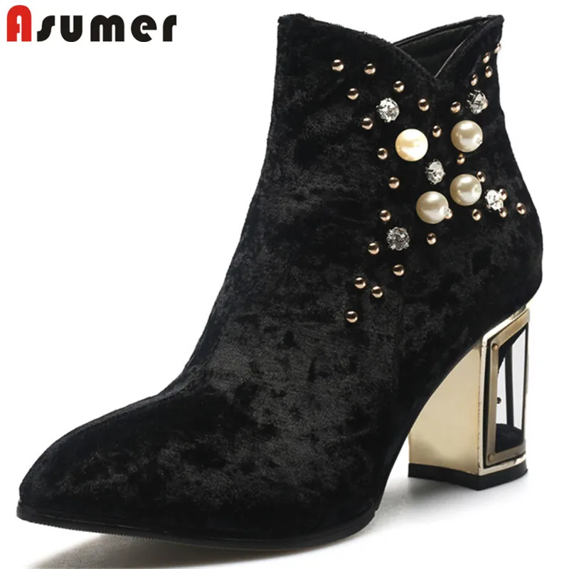Kopen Goedkoop ASUMER size 33 42 mode wees teen herfst winter schoenen vrouw elelgant dames laarzen hoge hakken strass enkellaars vrouwen Prijs