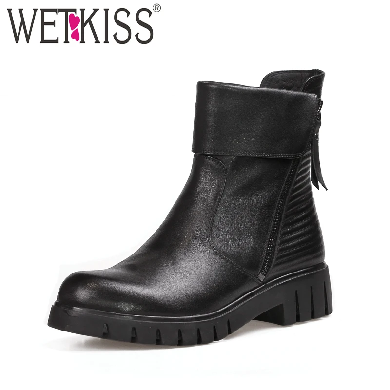 Beste Kopen WETKISS Herfst Dikke Hakken Vrouw Enkellaars Korte Pluche Platform Lederen Rits Schoeisel Nieuwe Winter Mode Casual Vrouwelijke Schoenen Goedkoop