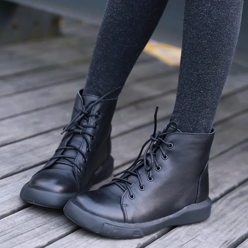 Dame Platte Laarzen Handgemaakte Lace Up Vrouwelijke Fur Leer Goedkoop
