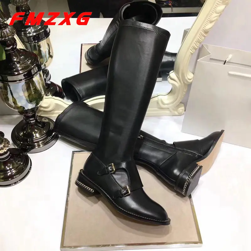 Goede Koop Top Designer Luxe Merk Super Kwaliteit Laarzen Lederen Motorlaarzen Merk Knie Hoge Designer Boot Mode Gesp Boot Goedkoop
