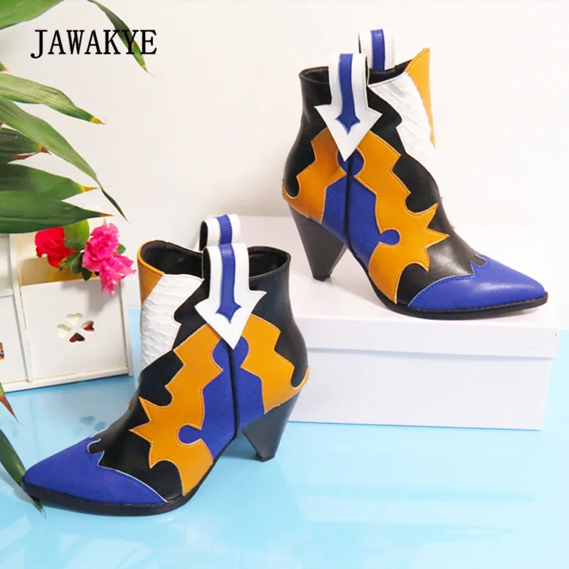 Beste Kopen 2018 Chic Enkellaarsjes Vrouw Wees Teen Gemengde Kleur Vreemde Hoge Hak Laarzen Vrouwen Martin Laarzen Goedkoop