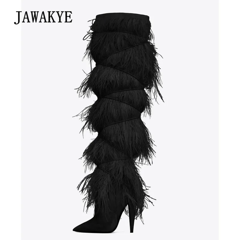 Kopen Goedkoop 2018 Runway Veer Kwastje Over De Knie Laarzen Vrouw Wees Teen Hoge Hak Laarzen Vrouwen Sexy Laarzen Online