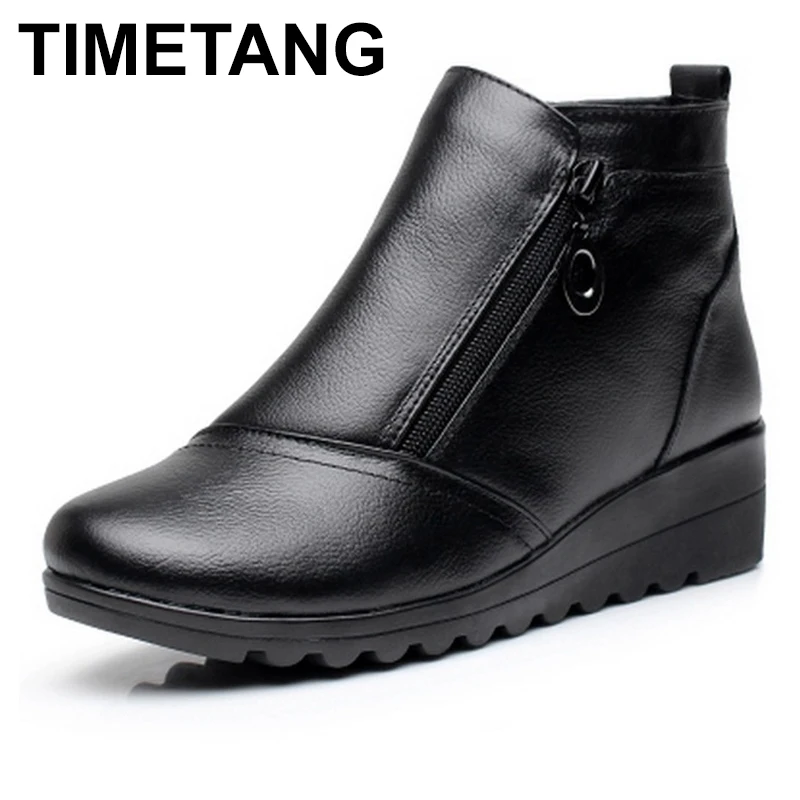 Goede Koop TIMETANG Winter Vrouwen Schoenen Vrouw Echt Leer Platte Snowboots 2017 Warme Enkellaars Vrouwen Laarzen Goedkoop