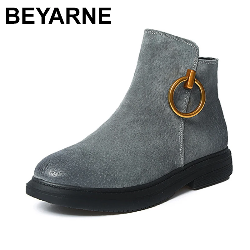 Kopen Goedkoop BEYARNE Merk Nieuwe Vrouwen Echt Lederen Laarzen Winter Snowboots Mode Vintage Hoge Kwaliteit Vrouw Enkellaars Schoenen Online
