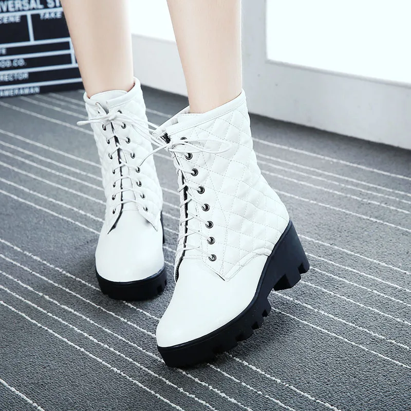 Bootie Platform Lace Up Winter Warm Mode Vrouwen Schoenen Zwart Wit