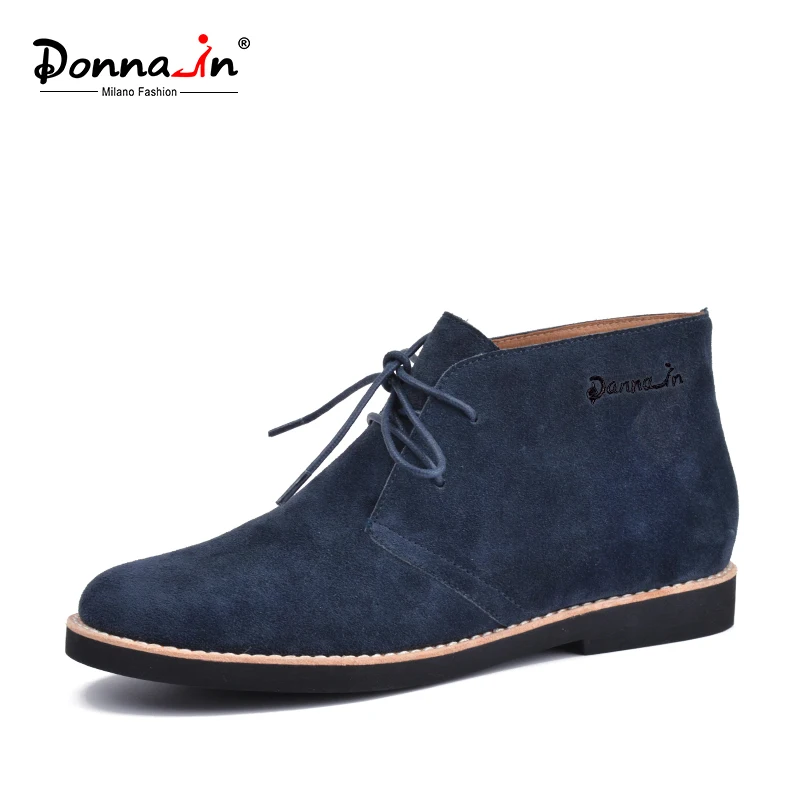 Beste Kopen Donna in 2017 lente nieuwe collecties donkerblauw koe suede casual korte laarzen vrouwen martin laarzen lederen lente laarzen Goedkoop