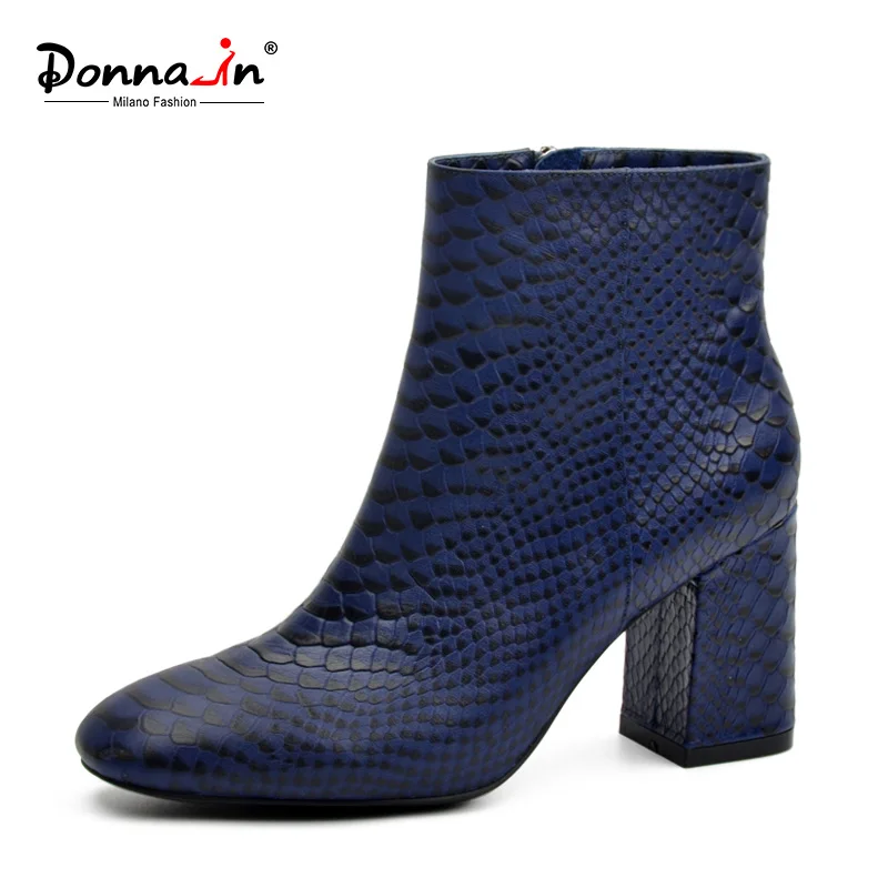 Beste Kopen Donna in 2018 nieuwe enkellaarsjes sexy snake lederen vrouwen schoenen vierkante neus dikke hoge hak python reli euml;f echt lederen laarzen Goedkoop